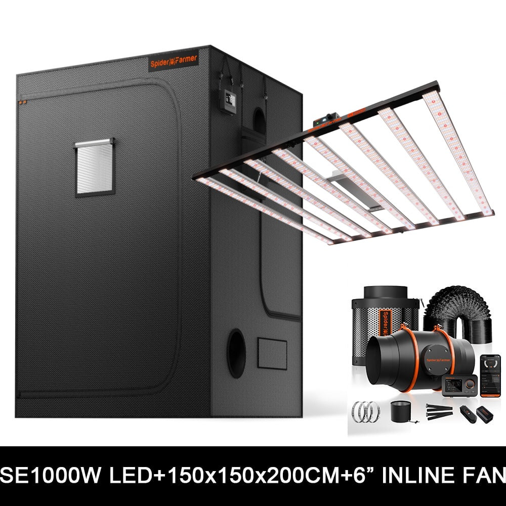 Spider Farmer 150x150x200cm Complete Grow Tent Kit I SE1000W LED Grow Light I 6-Inch Inline Fan with GGS Controller Kits